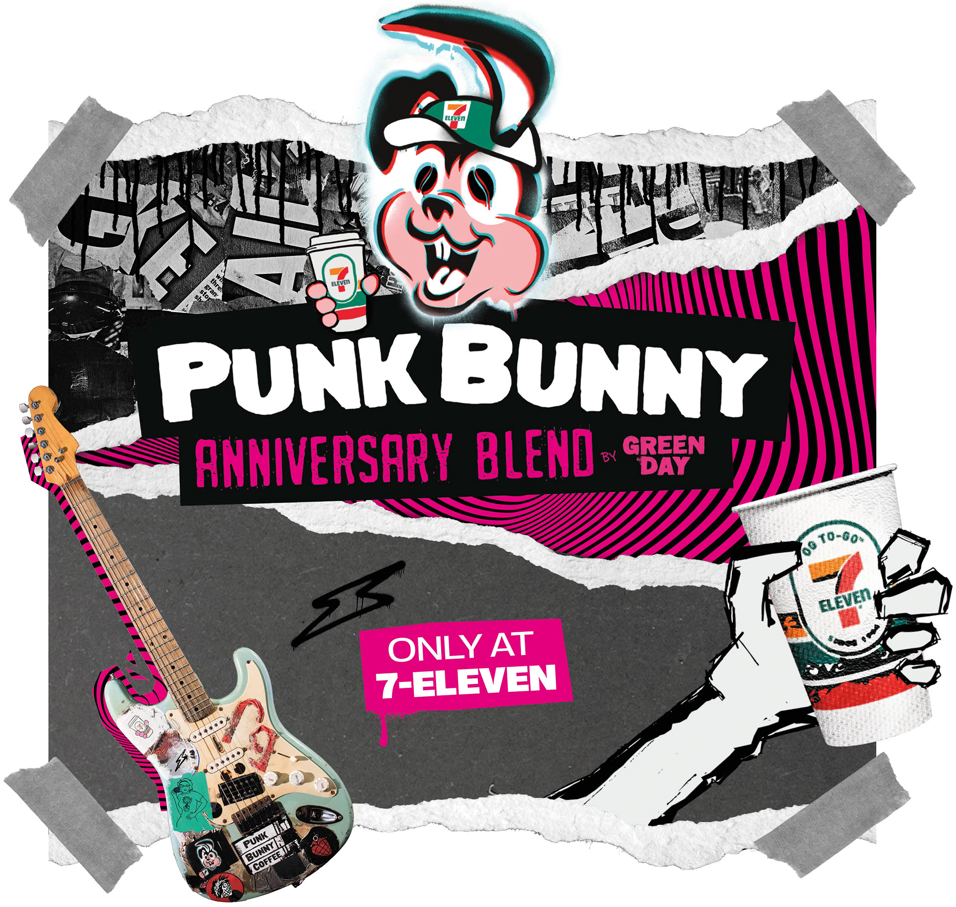 Punk Bunny Coffee, available at 7-eleven, Speedway, and Stripes stores nationwide. This collaboration celebrated both 60 years of 7-Eleven's to-go coffee and the 30th anniversary of Green Day's breakout album, American Idiot.